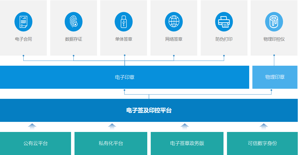 系统主要包含数字身份、电子签章、印控管控、数据存证等功能。